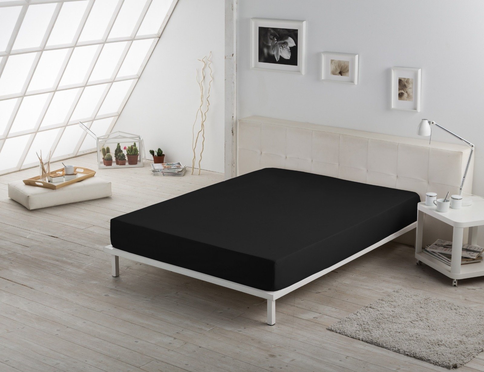 Juego de sábanas en tono negro, elegante y atrevido. Para quienes buscan un dormitorio con carácter y un estilo moderno y urbano. Crea un contraste impactante con la decoración.